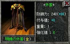 鎧・マントなどは+8なんですが、元がいいだけに自前装備より遥かに↑↑な装備でした。
